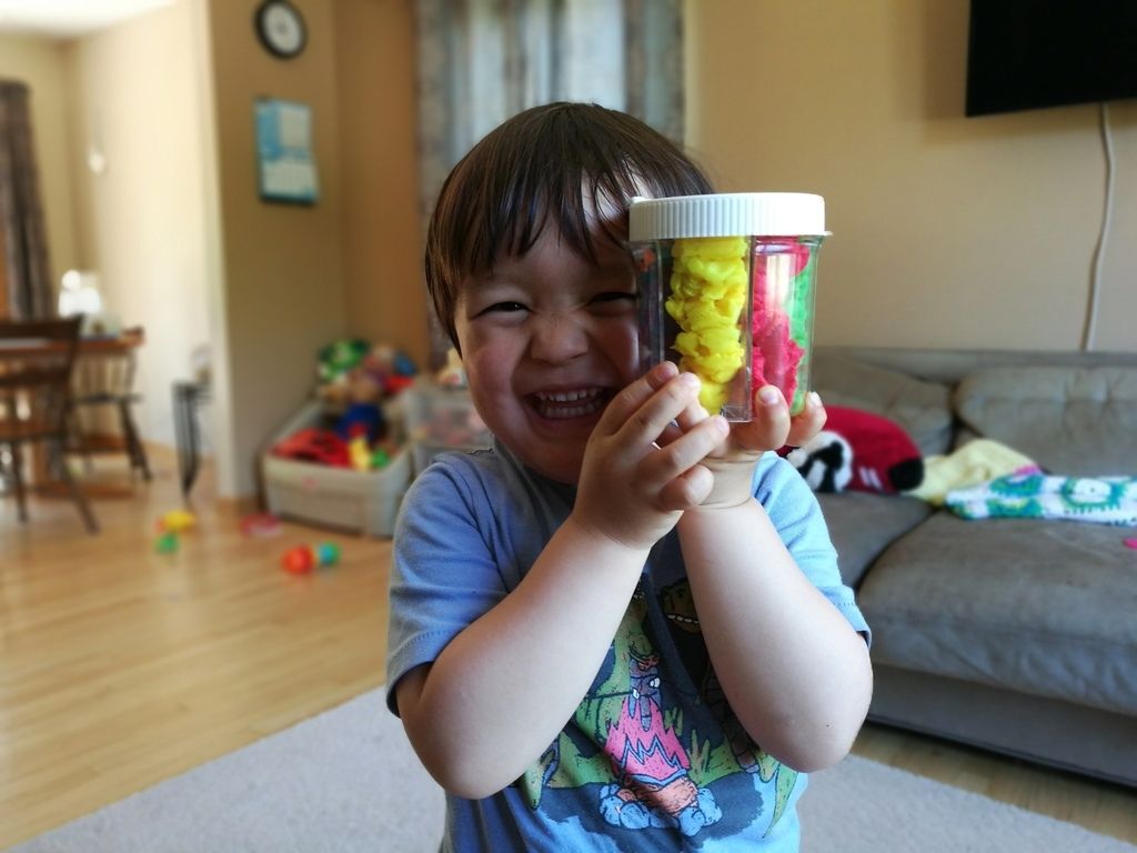見て!All the playdough 入れたよ!