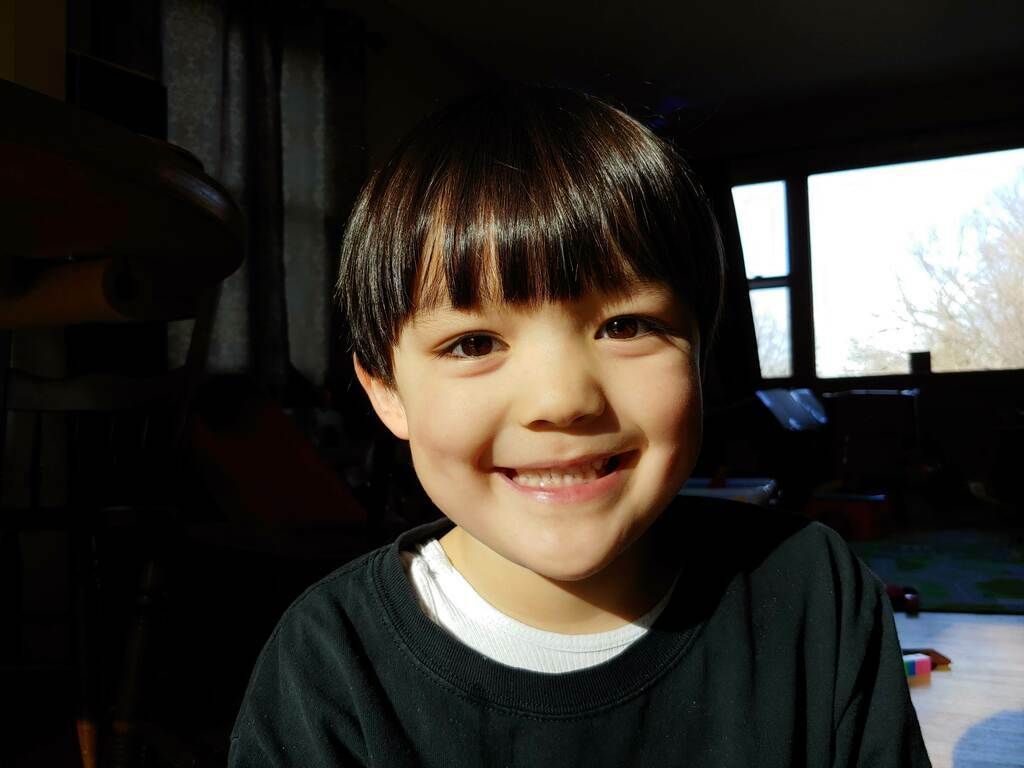 Inspecting a rambutan. (I told him it was from space)