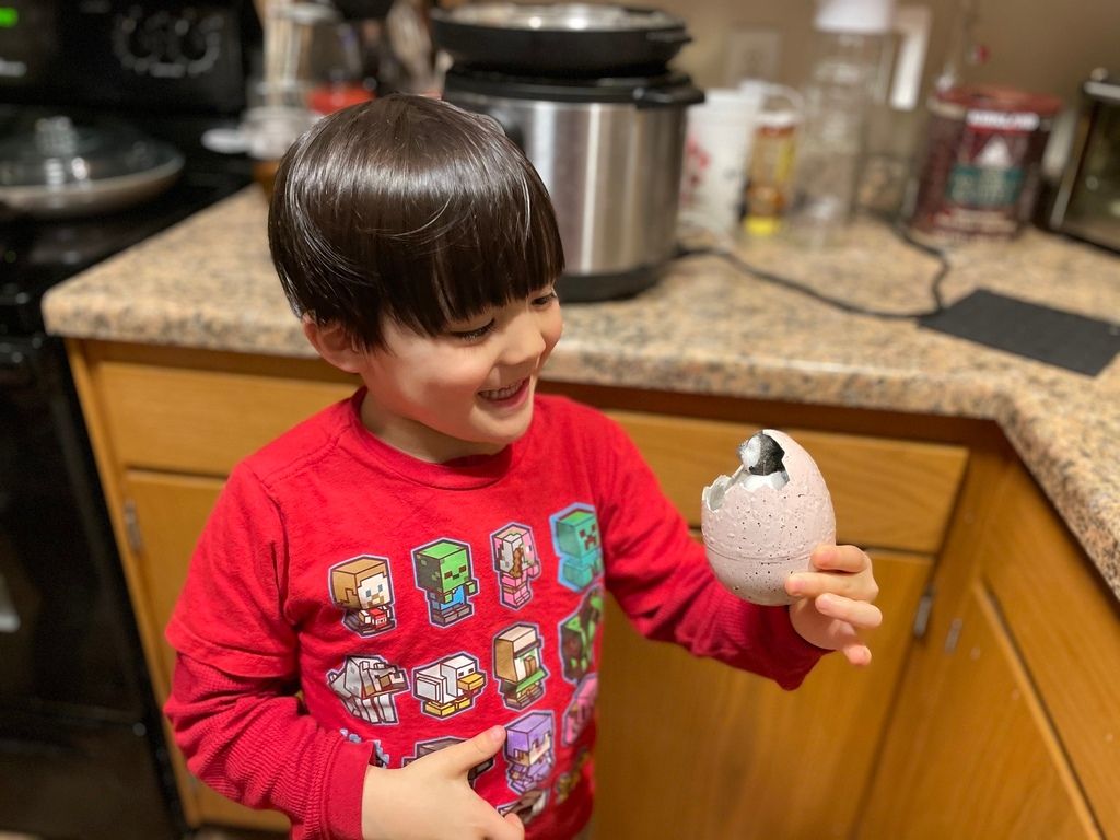 His penguin toy hatched.
